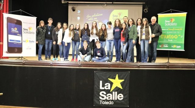 Colocar em prática o que se aprende em sala de aula. Com esse pensamento, os alunos da 3ª série do ensino médio do Colégio La Salle Toledo/PR, colocaram o espírito empreendedor para fora e apresentaram um projeto desenvolvido na disciplina de Metodologia Científica. Trata-se do aplicativo “Sou Solidário”, lançado para smartphone e que conta com a parceria da Fundação La Salle.