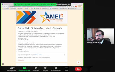 Na última segunda-feira, 4, foi realizado o segundo encontro da Fase Preparatória da Assembleia da Missão Educativa 2022 – AMEL 2022, em um encontro virtual que contou com a participação de todos os delegados representantes das Comunidades Educativas do Brasil e do Chile. A ocasião serviu para alinhamentos e orientação sobre o roteiro de trabalho desta etapa. A AMEL traz o lema “Educando na esperança e no cuidado”, e tem como inspiração bíblica a passagem “Coragem! Sou Eu. Não tenhais medo!” (Mc 6,49).